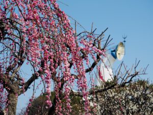 こちらも梅が見ごろで、太陽の塔を背景に咲く梅がとても印象的でした。